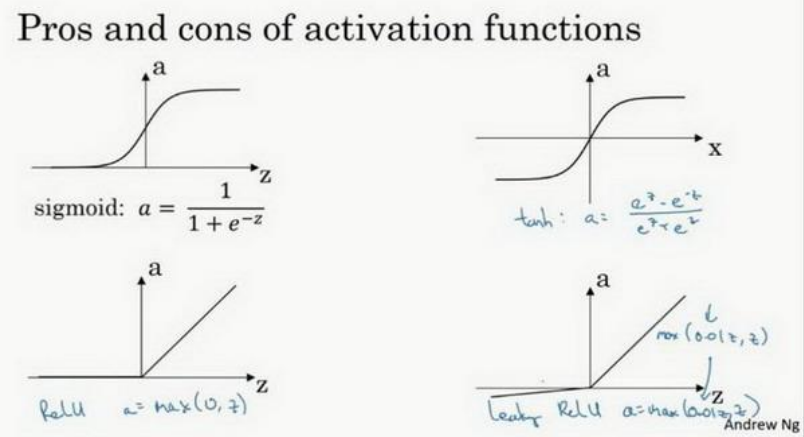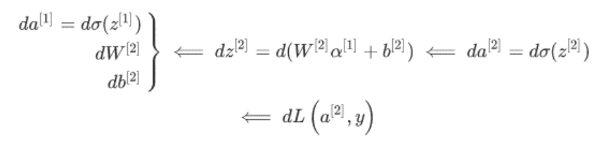 da = \frac{dL}{da} = -\frac{y}{a}+\frac{1-y}{1-a},\ dz = \frac{dL}{dz}=a-y
