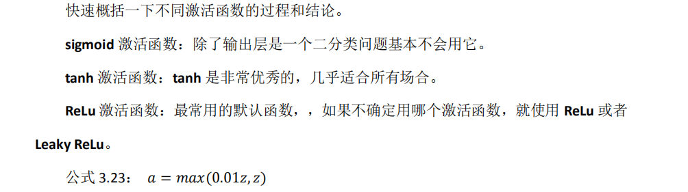 10.这是很多激活函数的默认选择,如果在隐藏层上不确定使用哪个激活函数,那么通常会使用 Relu 激活函数。有时,也会使用 tanh 激活函数,但 Relu 的一个优点是:当𝑧是负值的时候,导数等于 0。