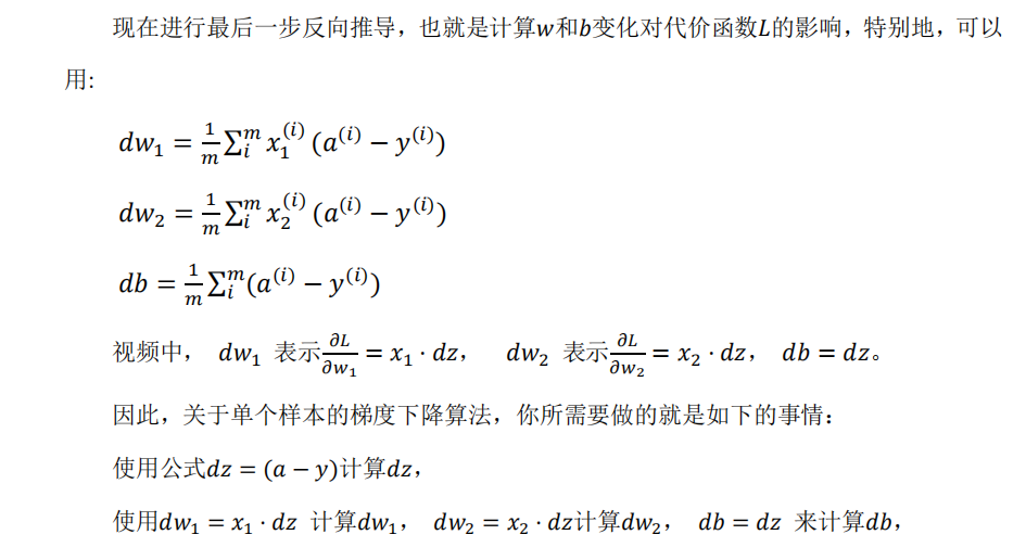 6.逻辑回归用到的公式:z = wT + b, y^\ =\ a = \sigma(z) = \frac{1}{1+e^{-z}},\ L(a, y) = -(yloga + (1-y)log(1-a))