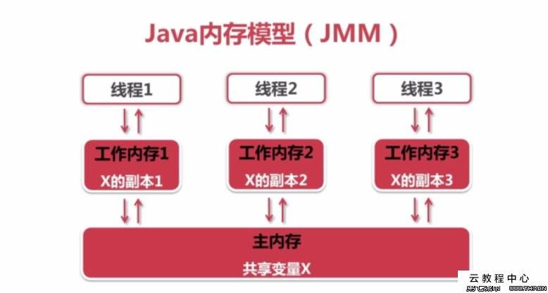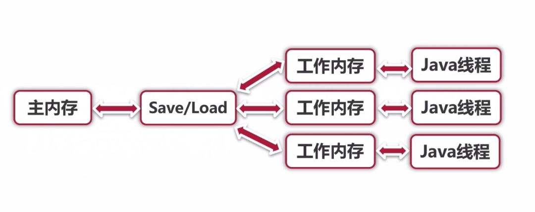 线程之间的共享变量存储在主内存(main memory)中,每个线程都有一个私有的工作内存(本地内存),工作内存中存储了该线程以读/写共享变量的副本。它类似于我们在计算机组成原理中学习的多处理器高速缓存机制:
