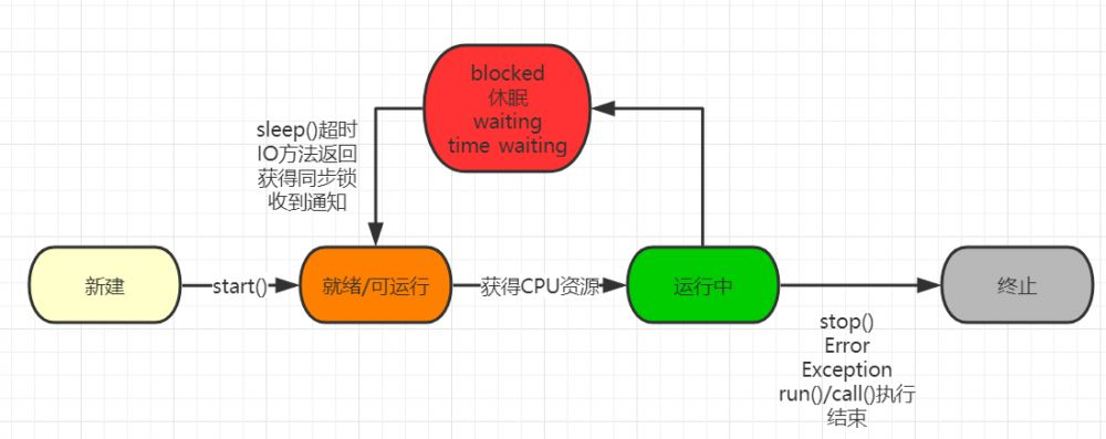 就绪状态:当线程调用了start()方法后,就进入了就绪状态。就绪状态的线程处于就绪队列中,要等待JVM里线程调度器的调度。